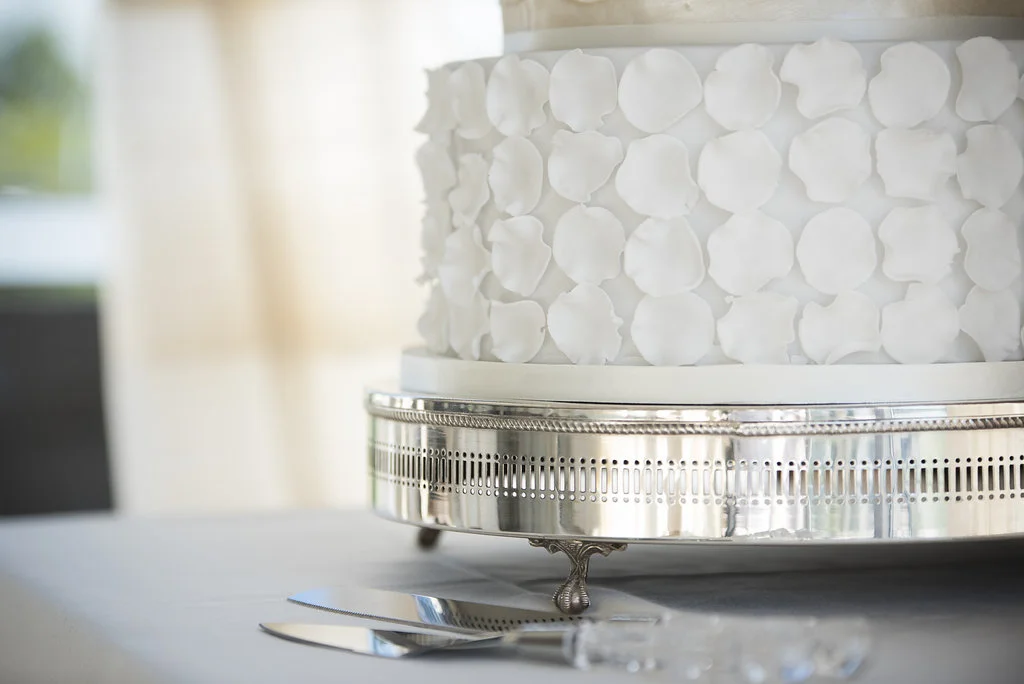 Reema had chosen her cake about a year ago but about a month before the wedding had a change of heart when she saw a champagne lustre cake; it was exactly what she really wanted. The rest of the design was left in my hands but as a nod to the cake Reema had fallen in love with by Australian designer Faye Cahill I included the look of glamour and luxury with individually hand placed pearl ivory sugar pearls and sprinkles made to look like delicate beaded embroidery. Each cake tier was a different flavour - summer fruits, chocolate cookies 'n' crème, gluten free lemon cake (supplied by Gluten Free Food Nottingham) and the newlyweds took home the red velvet top tier.